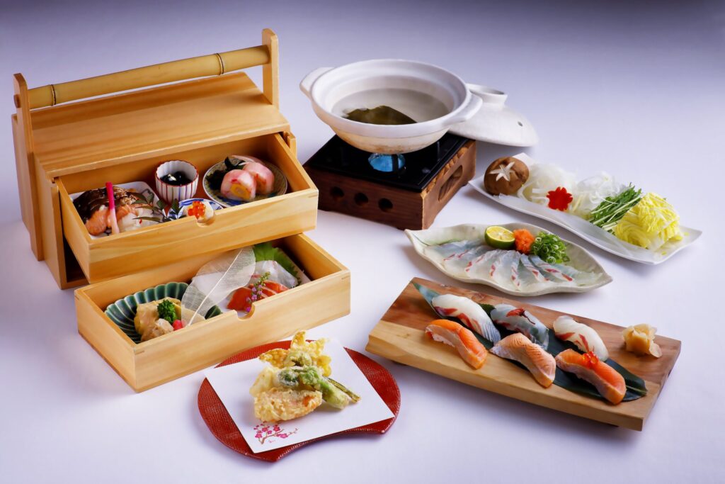 旬の魚介を使った寿司や天ぷら、彩り豊かな小鉢を一度に楽しめる、青の舎を代表する御膳。 瀬戸内の恵みを少しずつ味わえる内容で、景色とともにゆったりとした食の時間をお楽しみいただけます。